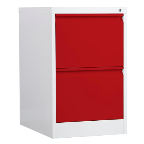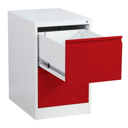 Phoenix FC Series 2 Drawer Filing Cabinet Grey Body Red Drawers with Key Lock - FC1002GRK