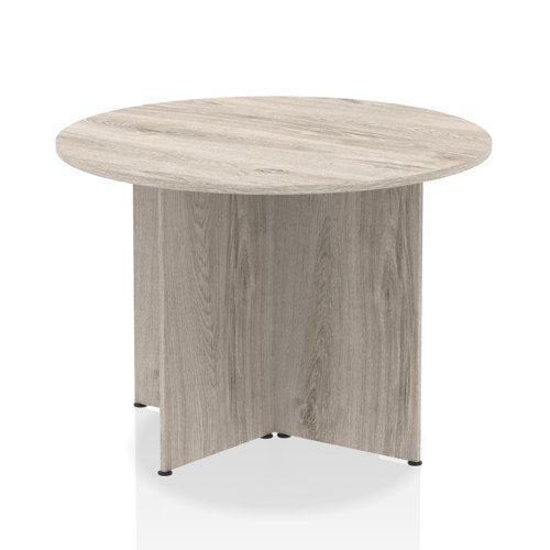 Dynamic Impulse W1000 x D1000 x H730mm Free-Standing Round Table Panel Arrowhead Leg Grey Oak Finish - I003796
