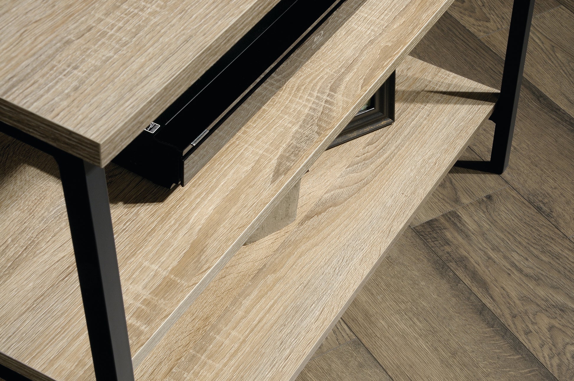 Teknik Office Industrial Style TV Stand with a durable black metal frame and charter oak effect shelves that can hold up to a 36" TV.Delivery in: