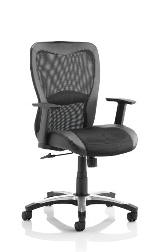 If elegance is close to the top of your list of requirements when it comes to executive office seating, you simply must be introduced to the Victor II. Benefitting from a unique combination of fabric, leather and mesh, this eye-catching chair comes with a stylish silver accented 5 star base and is available with or without a matching headrest.