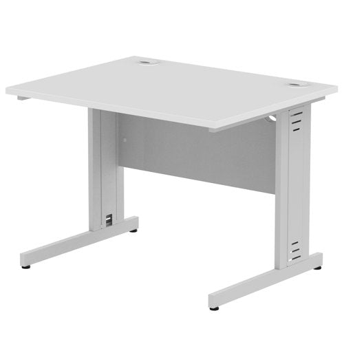 Impulse 1000 x 800mm Straight Desk White Top Silver Cable Managed Leg I003540