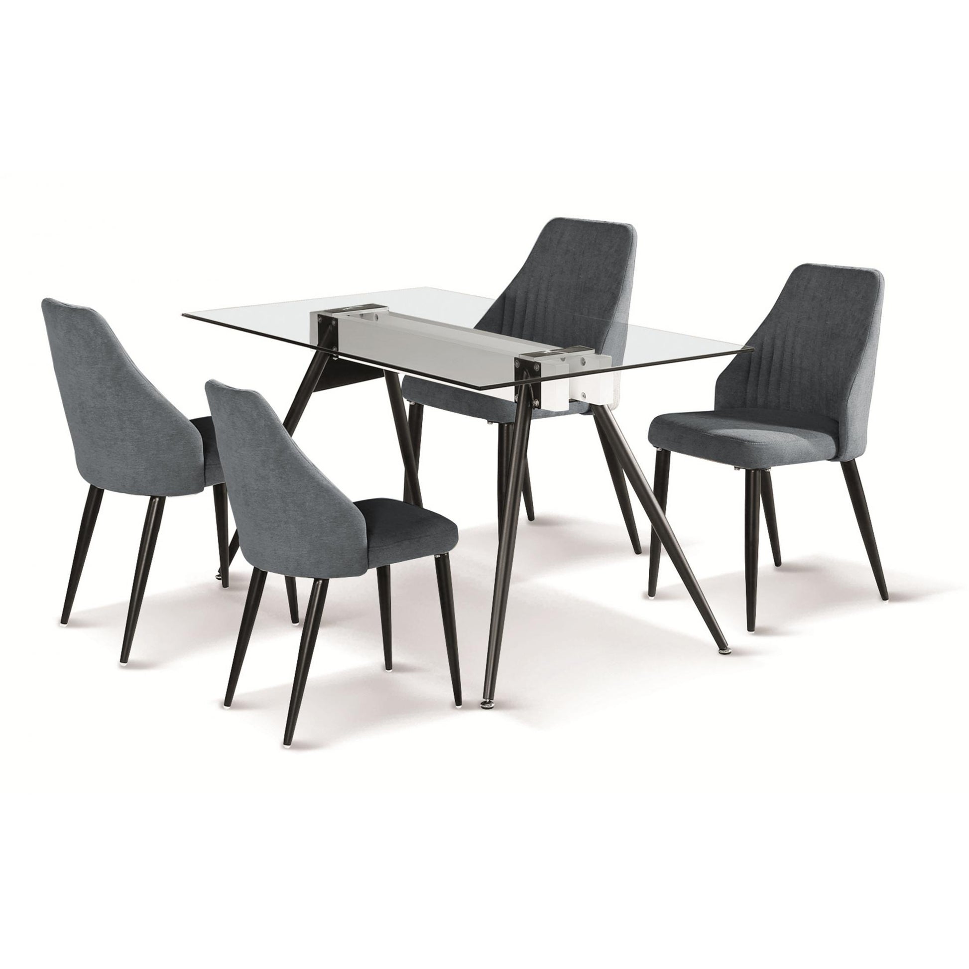 Tessa Fabric Chairs - Comfortable grey fabric chairs with black metal legs. Sold in sets of 4. Assembly required.